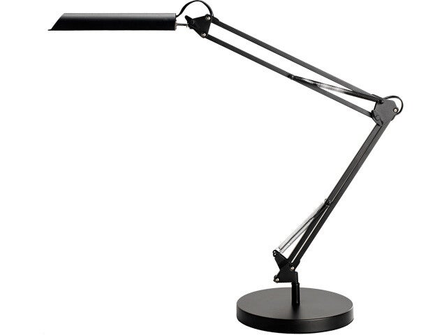 SWINGO LED von Unilux ist mit einem sehr effizienten LED-Modul ausgestattet. Mithilfe des Dimmschalters am Leuchtenkopf lassen sich drei verschiedene Lichtstärken einstellen, damit die Beleuchtung an unterschiedlichen Aktivitäten angepasst werden kann wie z.B. Arbeiten, Lesen oder entspannte Gesprächssituationen. Dank des Doppelgelenk-Arms mit Ausgleichsfedern kann SWINGO LED stufenlos ausgerichtet werden. Ein dreh- und neigbarer Kopf und ein Drehgelenk am Sockel erweitern den Bewegungsspielraum zusätzlich. Der am Lampenkopf angebrachte Tast-Dimmschalter ist immer bequem zu erreichen. Die Leuchte wird mit zwei Befestigungsmöglichkeiten ausgeliefert: mit schwerem Sockel (2,3 kg) und Tischklemme (bis max. 55 mm Plattenstärke). Das sehr effiziente LED-Modul erzeugt eine große Lichtmenge bei geringem Energieverbrauch, wie auch die Lichtausbeute von 120 lm/W belegt.