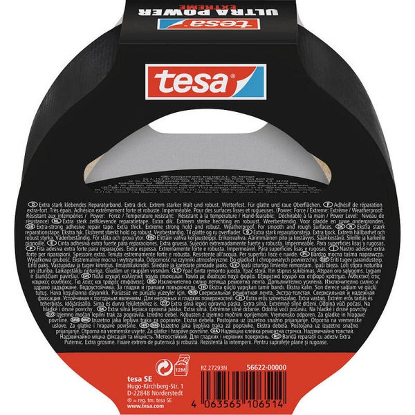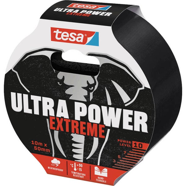 tesa® ULTRA POWER Extreme ist ein Gewebeband mit extrem starker Klebekraft und meistert besondere Herausforderungen problemlos. Sein starker Halt ermöglicht Sofortreparaturen zuverlässig im Innen- und Außenbereich. Dabei ist das tesa® ULTRA POWER Extreme äußerst temperaturbeständig (von -15°C bis +90°C) auch bei extremen Wetterbedingungen. Verwenden Sie das extrem starke und äußerst belastbare Universaltape für schnelle Reparaturen, z.B. zum Ausbessern von Löchern, Spalten, Lücken, Rissen oder zum Reparieren von gebrochenen Teilen.