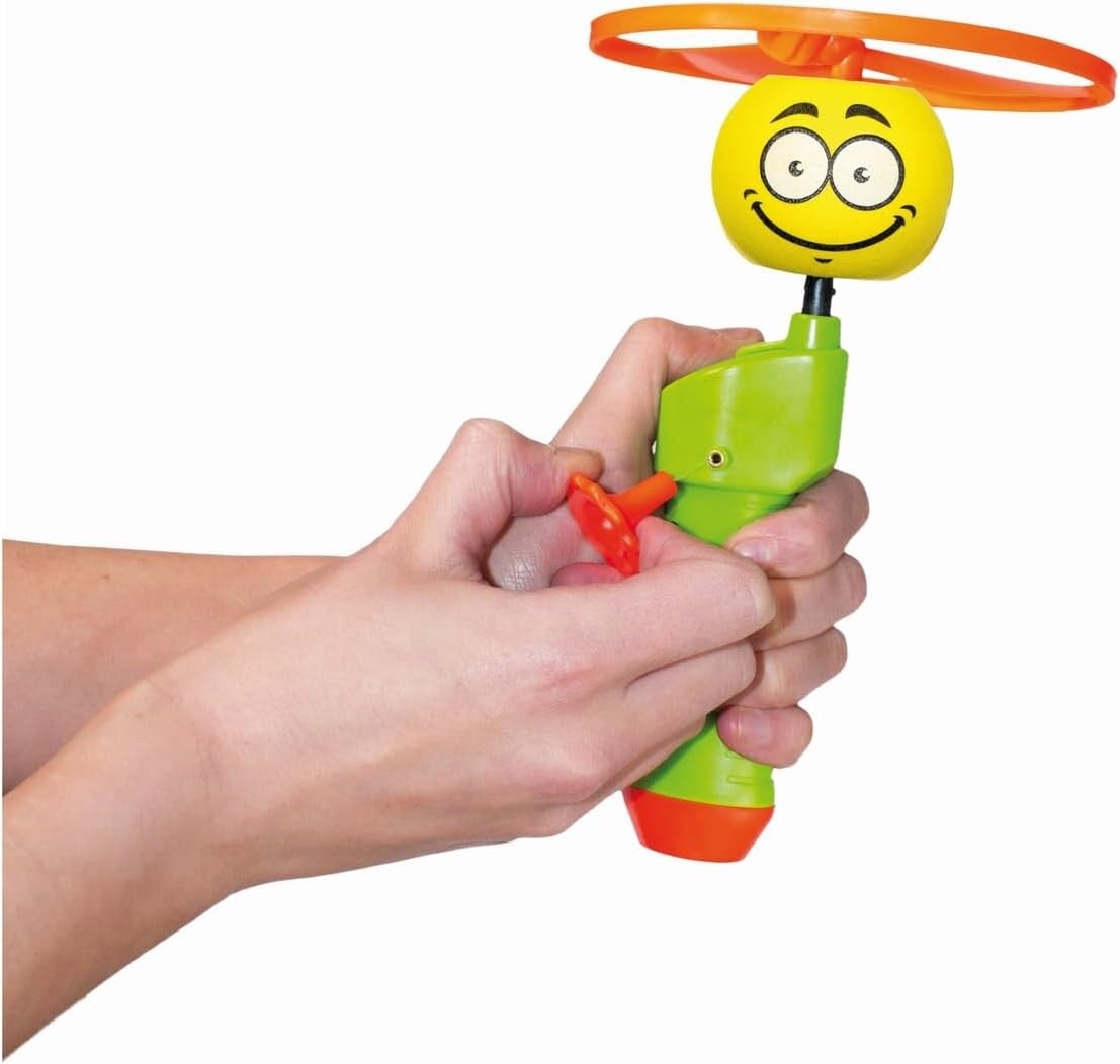 Paul Günther 1638 - Fliegender Kreisel Spin Ball mit Smiley Motiv, inkl. Starter, für Kinder ab 4 Jahren, fliegt hoch und kreiselt nach der Landung, Rotor ca. Ø 12,5 cm