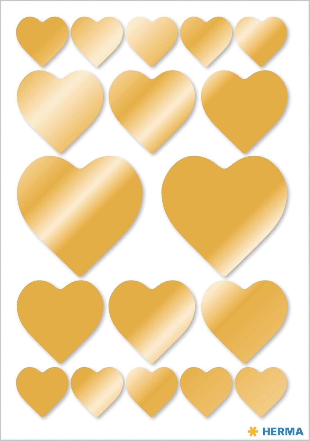 - Lieferumfang: 36 x HERMA Valentinstag Herzen Liebe Love Sticker (2 Blatt je 18 Aufkleber) - Herzen Gold