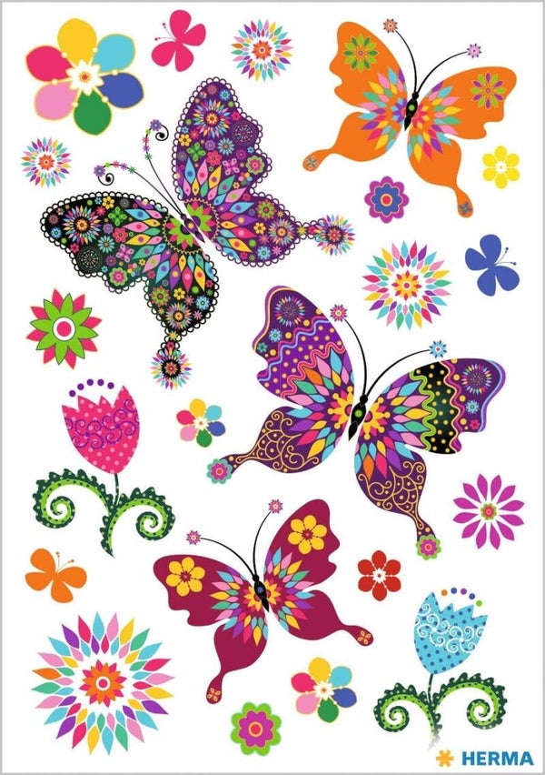 - Lieferumfang: 22 x HERMA Glitterfolie Sticker Kinderaufkleber (1 Blatt je 22 Aufkleber) - Schmetterlingsvielfalt